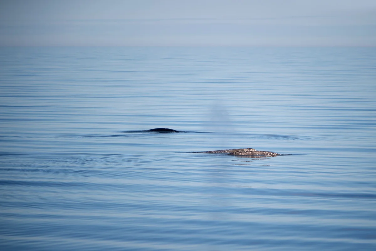 There was a different kind of quiet between us than earlier before. It was not out of tiredness, but of awe. After a couple minutes, she broke the silence. “Imagine what it must have been like before whaling. Imagine what the horizon must have looked like back then.” A gray whale and her calf surfaced a few hundred yards from the starboard quarterdeck. The first blow from the female was strong and hovered in the air for several seconds. The calf followed. This was one of many pairings we encountered throughout the afternoon and even into the night. Kate estimated that over a hundred gray whales were within viewing distance from the ship. Slowly, researchers withdrew from the railing and returned back to their research stations. More sampling to continue before the day’s end.
