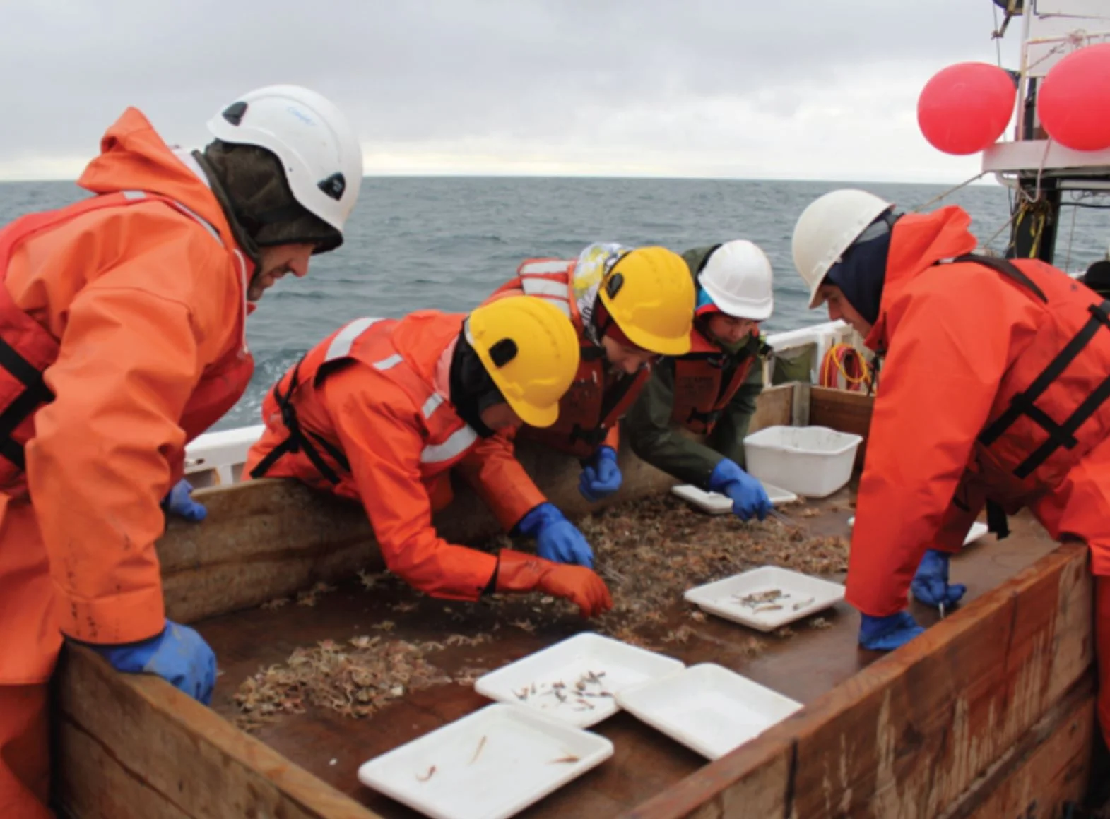 One of the final nets to talk about is the surface trawl. It is an oval-shaped net that allows us to catch larger fish swimming near the top of the water. Around 16 meters wide and about 18 meters in height, it’s finest moment during leg three of the survey happens when a single juvenile pacific salmon emerges from the webbing. We have been using this net mainly for leg three and it is used in hopes of gaining more information about the fish that swim in the lower Chukchi Sea. Kris Cieciel watches over the operation of the surface trawl from the wheelhouse with intent focus, working with the crewmen who steer the boat in order to maintain the large trawl for the best speed and angle for optimum catching area in all types of weather and wave. Other fish that have been caught, such as herring and crested sculpin, brought to light the size of fish in relation to the upper Chukchi Sea, which were significantly smaller.